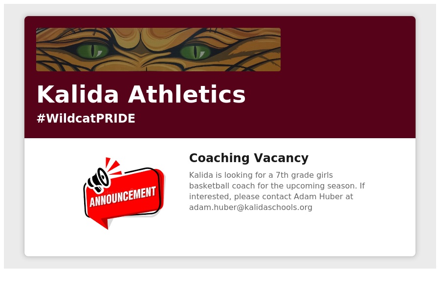 Coaching Vacancy: 7th Grade Girls Basketball Coach